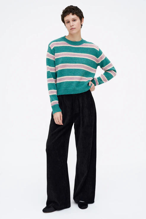 Jersey Jacquard estampado Nebula. Con cuello redondo y manga larga con hombro ligeramente caído.