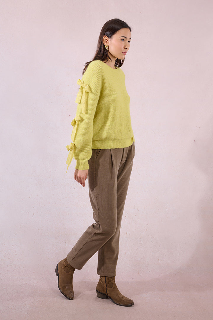 -Jersey de punto oversize -Manga larga adornada con lazos decorativos de encaje -Escote redondo -Corte recto -Acabado acanalado -Longitud desde el hombro 56cm para una talla S"Composición