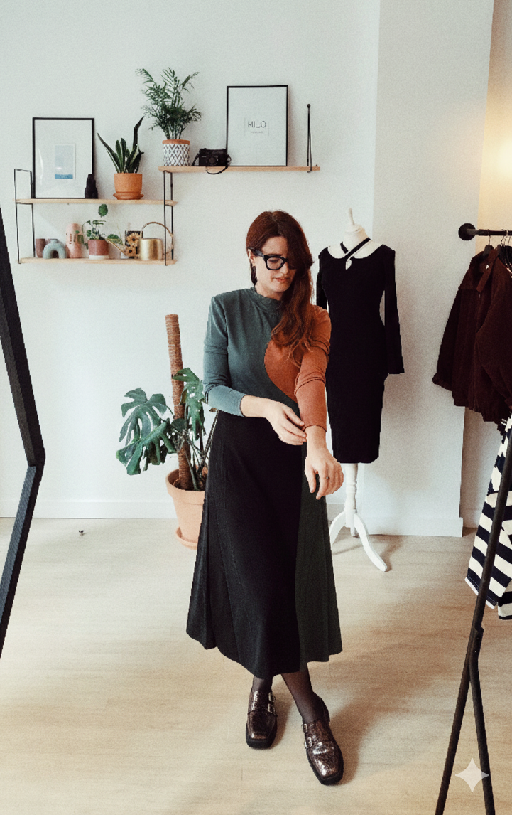 Vestido midi tricolor